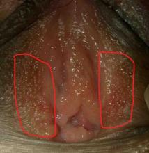 3、尖锐湿疣:好发于大小阴唇、阴蒂、阴道和子宫颈,表现为乳头状、鸡冠状或融合成菜花状,大小不等,部分女性症状融合成片或有斑块状表现,出现外阴瘙痒、白带增多等症状。
